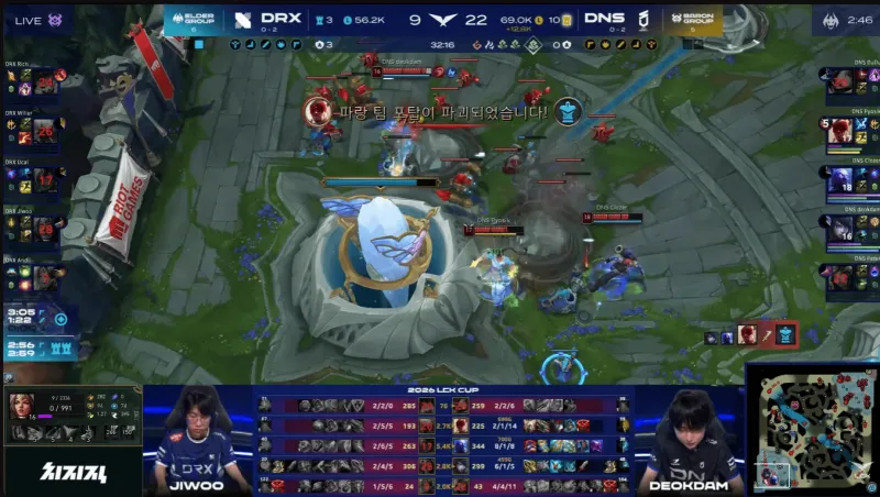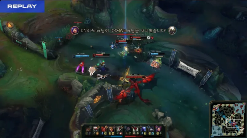 第三十一分钟:DRX主动出击未果,被DNS团战打出一换五,DNS顺势一波结束比赛