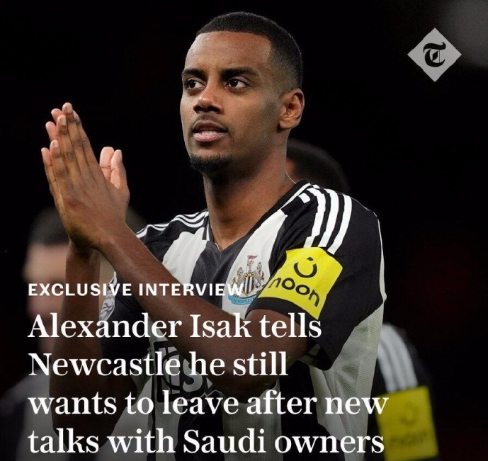 目前,距离截止日期仅剩6天,但几乎可以确定伊萨克将错过周六对阵利兹联的比赛,此前他已拒绝参加对阵阿斯顿维拉和利物浦的比赛。没了伊萨克,纽卡斯尔2轮不胜仅拿到1分。